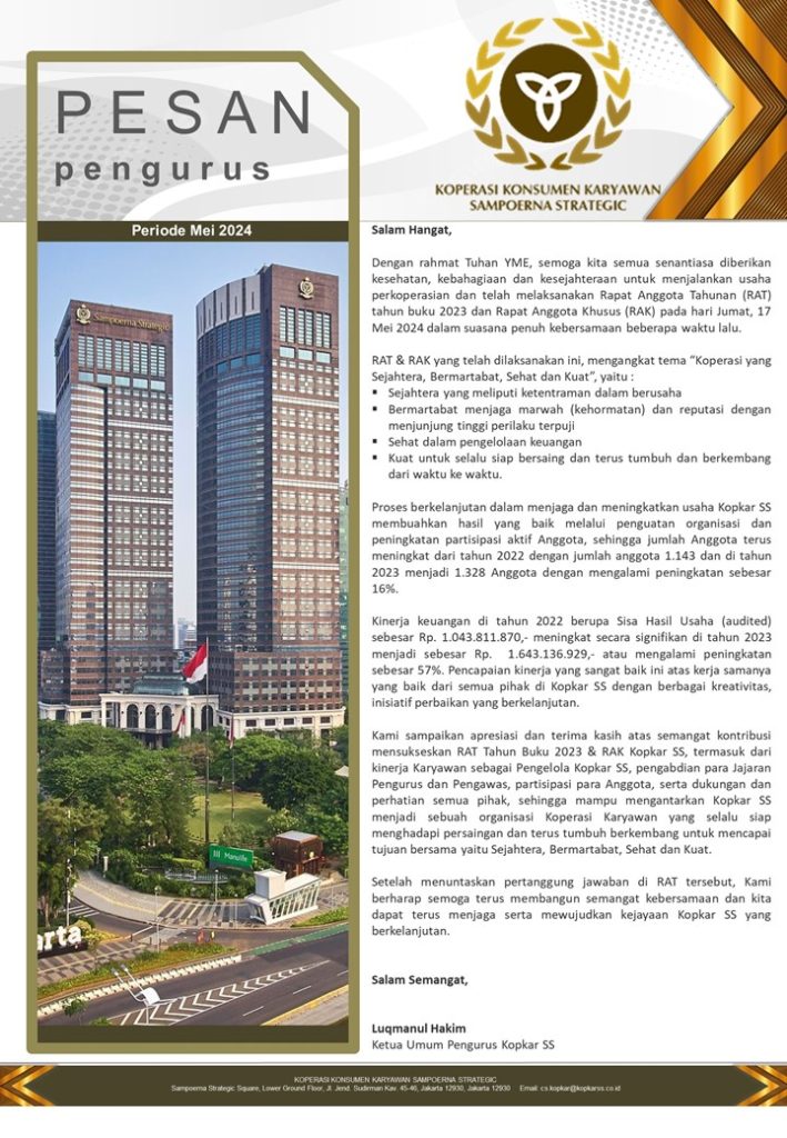 PESAN PENGURUS – MEI 2024
