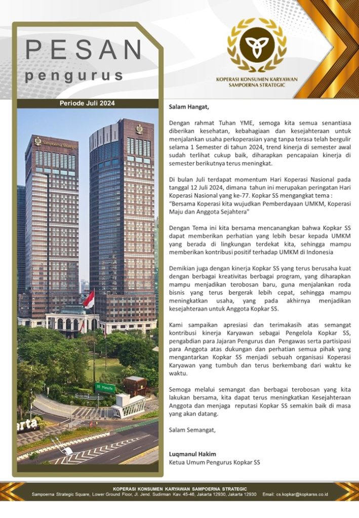 PESAN PENGURUS – JULI 2024