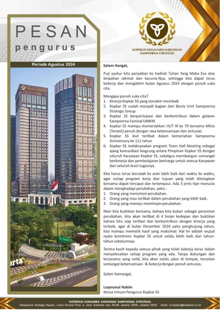 PESAN PENGURUS – AGUSTUS 2024