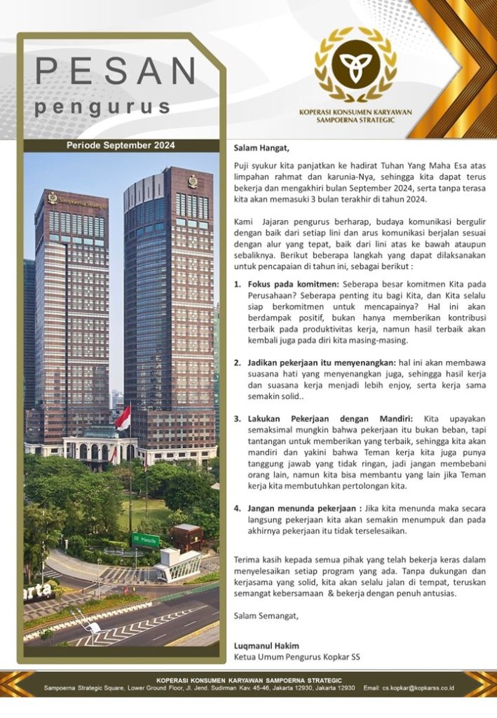 PESAN PENGURUS – SEPTEMBER 2024
