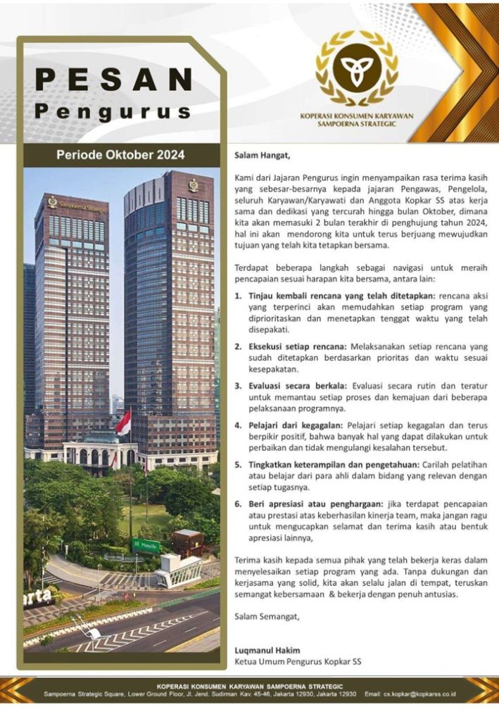 PESAN PENGURUS – OKTOBER 2024