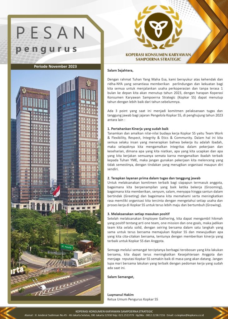 PESAN PENGURUS – NOVEMBER 2023