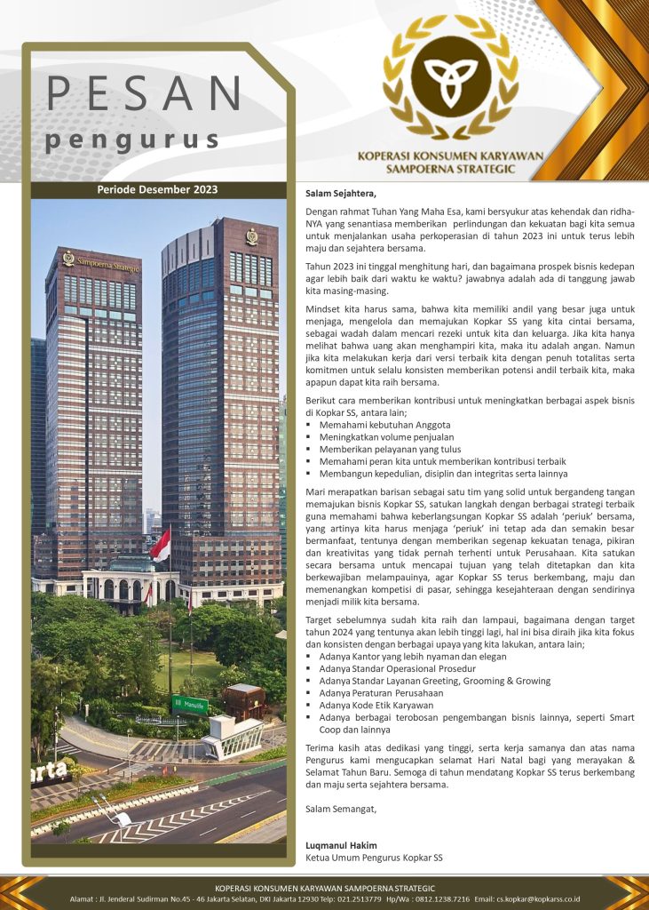 PESAN PENGURUS – DESEMBER 2023