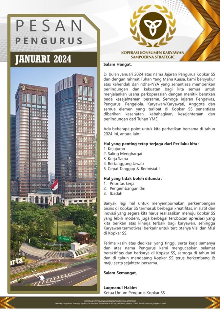PESAN PENGURUS – JANUARI 2024
