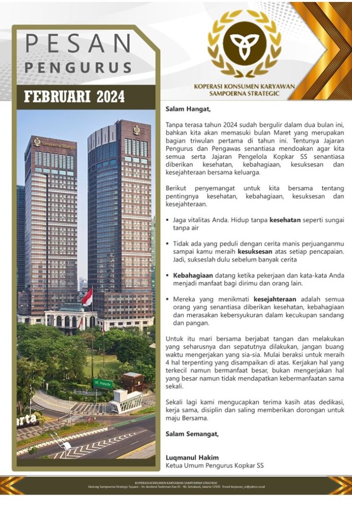 PESAN PENGURUS – FEBRUARI 2024